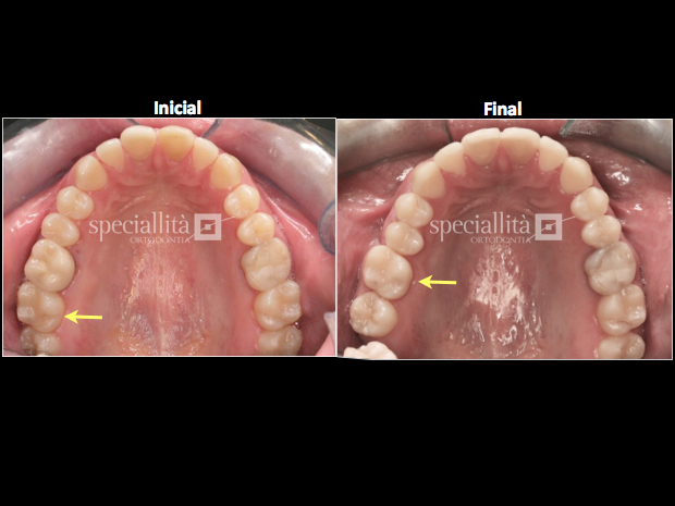Vista oclusal do fechamento completo do espaço da extração realizada