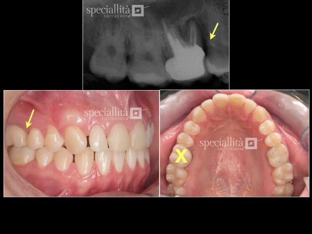 Perda óssea no 1o molar superior direito causada por prótese unitária invadindo espaço biológico. Planejamento envolvendo a exodontia do 1o molar e fechamento do espaço por mesialização do 2o e 3o molares
